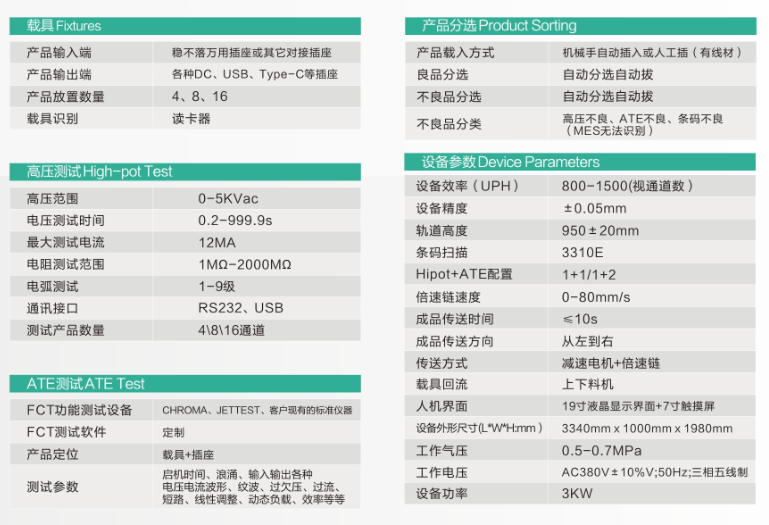 适用范围:电源、适配器类成品自动在线测试